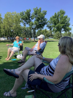 Faye worked on some of her UFOs. The Victoria hanging flower baskets took over 3 years!